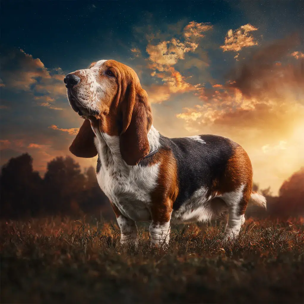 Baset je jedno z nejrozpoznatelnějších psích plemen díky své charakteristické nízké, dlouhé stavbě těla, obrovským klokočím uším a melankolickému výrazu. Byl vyšlechtěn jako pracovní honič pes pro lov v hustém podrostu, kde jeho nízká výška umožňovala snadný průchod křovím a jeho vynikající čich vedl lovce ke zvěři. Baset má druhou nejlepší čichovou schopnost po bloodhoundovi - má přibližně 220 milionů čichových receptorů. Navzdory svému klidnému a téměř línému vzhledu je to vytrvalý a houževnatý pracovní pes, který dokáže stopovat zvěř na dlouhých vzdálenostech. Jeho povaha je výjimečně klidná a přátelská - baset miluje lidi a je vynikajícím rodinným psem. Je trpělivý s dětmi, přátelský k cizím lidem a dobře vychází s ostatními psy. Má však typickou vlastnost honících psů - tvrdohlavost a selektivní poslušnost. Když baset zachytí zajímavou stopu, může ignorovat veškeré volání. Je známý svým hlubokým, melodickým štěkáním, které používá při lovu a někdy i doma. Baset je klidný domácí společník, který rád odpočívá na pohovce, ale potřebuje pravidelný pohyb, aby si udržel zdravou váhu. Jeho dlouhá těla a krátké nohy vyžadují speciální péči, zejména ochrana před nadváhou a problémy se zády.