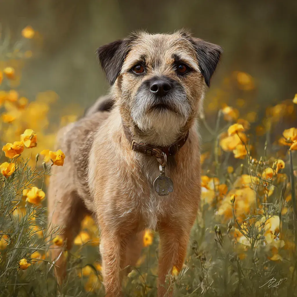 Border teriér je jeden z nejstarších a nejpůvodnějších teriérských plemen z anglo-skotského pohraničí. Byl vyšlechtěn jako pracovní teriér schopný běžet s loveckými smečkami a následně vlézt do liščích nor, aby vyháněl lišky. Tato pracovní historie vytvořila robustního, vytrvalého psa s obrovským srdcem. Border teriér je charakteristický svou "výdrovou" hlavou - širší lebkou s širokým čelem a krátkou tlamou, což mu dává jedinečný, roztomilý vzhled. Na rozdíl od mnoha jiných teriérů je border teriér překvapivě přátelský a společenský. Má typické teriérské vlastnosti - odvahu, houževnatost, nezávislost - ale je méně agresivní a více přizpůsobivý než většina teriérů. S lidmi je velmi přátelský, miluje děti a je vynikajícím rodinným společníkem. Má však stále silný lovecký instinkt - pronásleduje všechno, co běží, a může být problematický s malými domácími zvířaty.