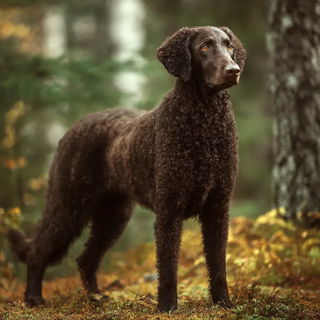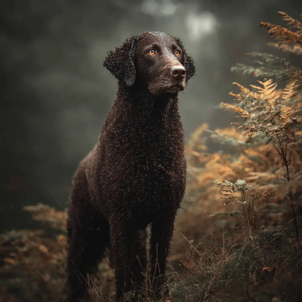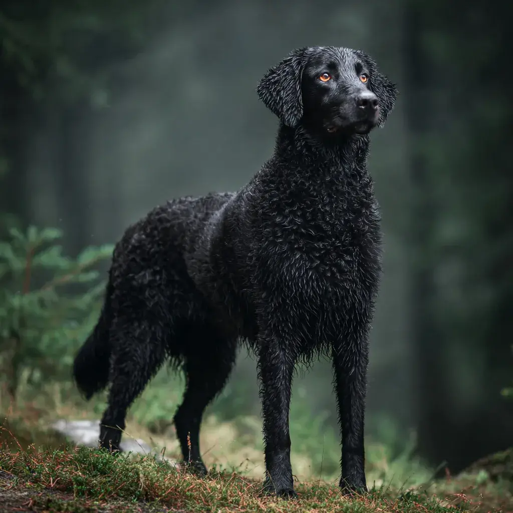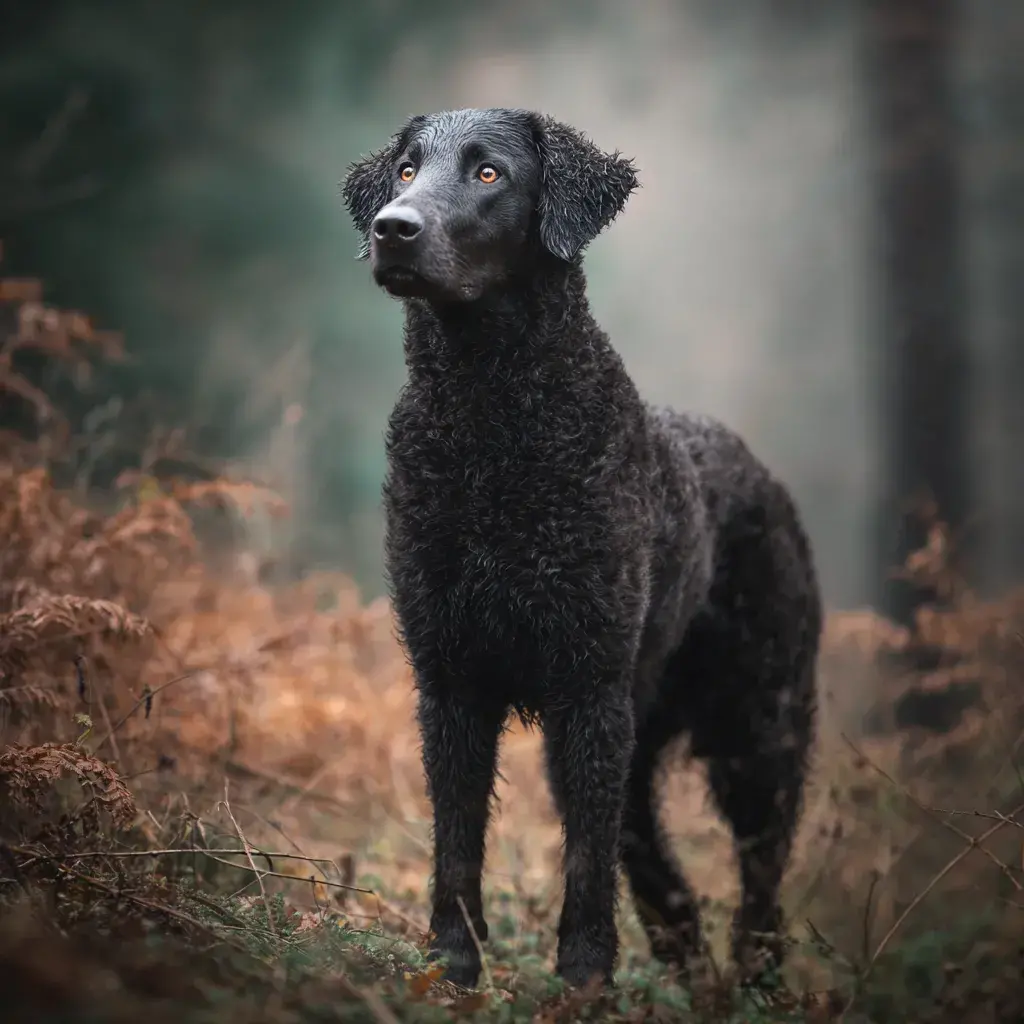 Curly Coated Retriever je nejstarší uznané plemeno retrívů, vyšlechtěný v Anglii již v 18. století pro aportování vodního ptactva. Jeho nejcharakterističtějším rysem je unikátní srst - husté, těsné kudrliny pokrývající celé tělo kromě obličeje a nohou, připomínající astrakan (perskou kožešinu). Tato srst je vodotěsná a chrání psa před ledovou vodou, trním a nepřízní počasí. Curly je méně známý než labrador nebo golden retriever, ale mezi znalci je vysoce ceněn pro své pracovní schopnosti a unikátní povahu. Na rozdíl od přátelských, extrovertních labradorů a goldenů má Curly rezervovanější, důstojnější temperament. Je inteligentní, nezávislý a má silnou vlastní vůli. S rodinou je oddaný a láskyplný, ale není přehnaně demonstrativní. S cizími lidmi je rezervovaný až podezíravý - není to pes, který by vítál každého.