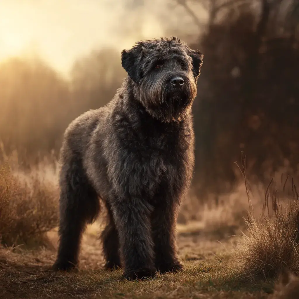 Flanderský bouvier je impozantní pes pocházející z regionu Flandry (hranice mezi Belgií a Francií), kde byl po staletí používán jako univerzální farmářský pes - pásl dobytek, táhl vozíky s mlékem, hlídal usedlosti a pomáhal řezníkům hnát dobytek na trh. Jeho název "Bouvier des Flandres" znamená doslova "pasák dobytka z Flandry". Je to velký, mohutný pes (samci až 68 cm, 40+ kg) s charakteristickou hustou, drátovitou srstí, výrazným vousem a obočím. Jeho vzhled je robustní a pracovitý - není to elegantní pes. Flanderský bouvier má klidný, sebevědomý temperament s přirozeným ochranářským instinktem. Není to hyperaktivní nebo nervózní pes - je vyrovnaný a rozvážný. S rodinou je hluboce oddaný a láskyplný, ale není přehnaně demonstrativní.