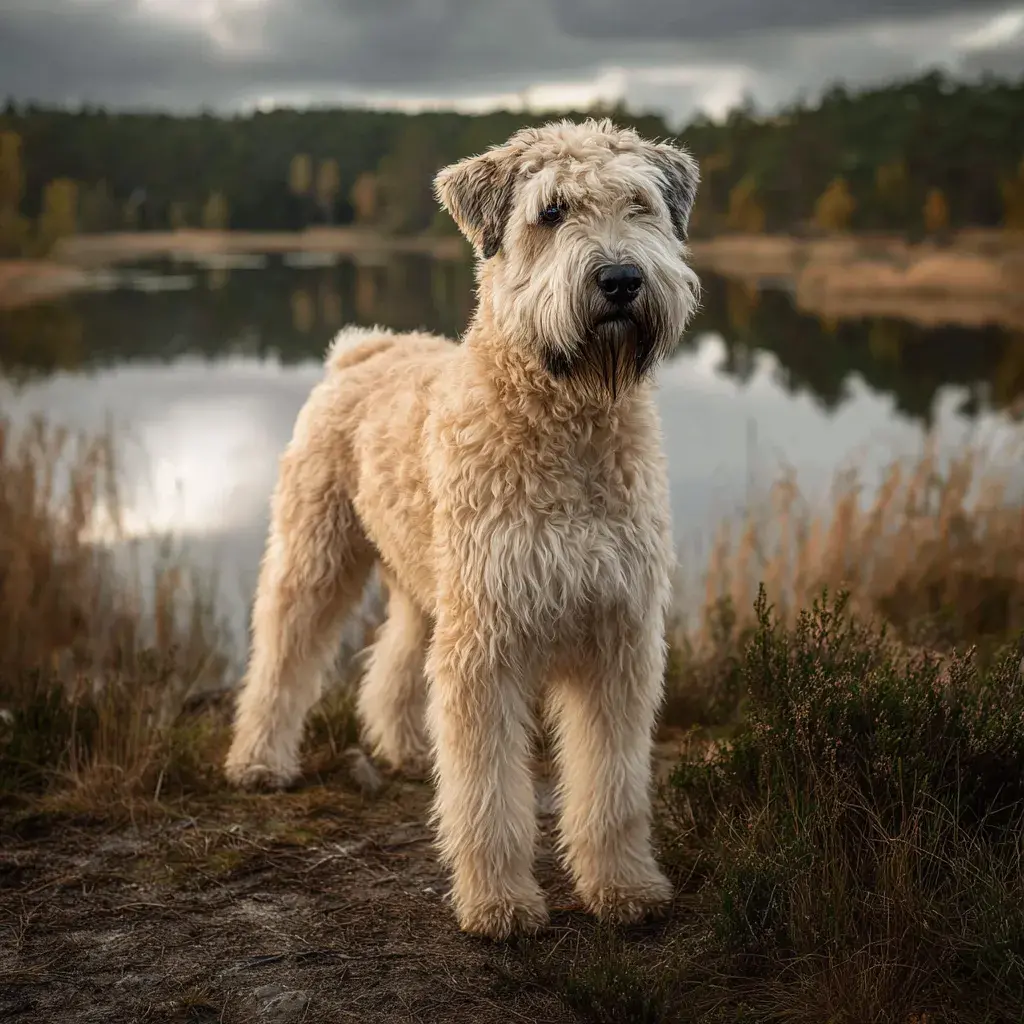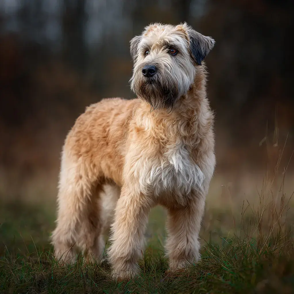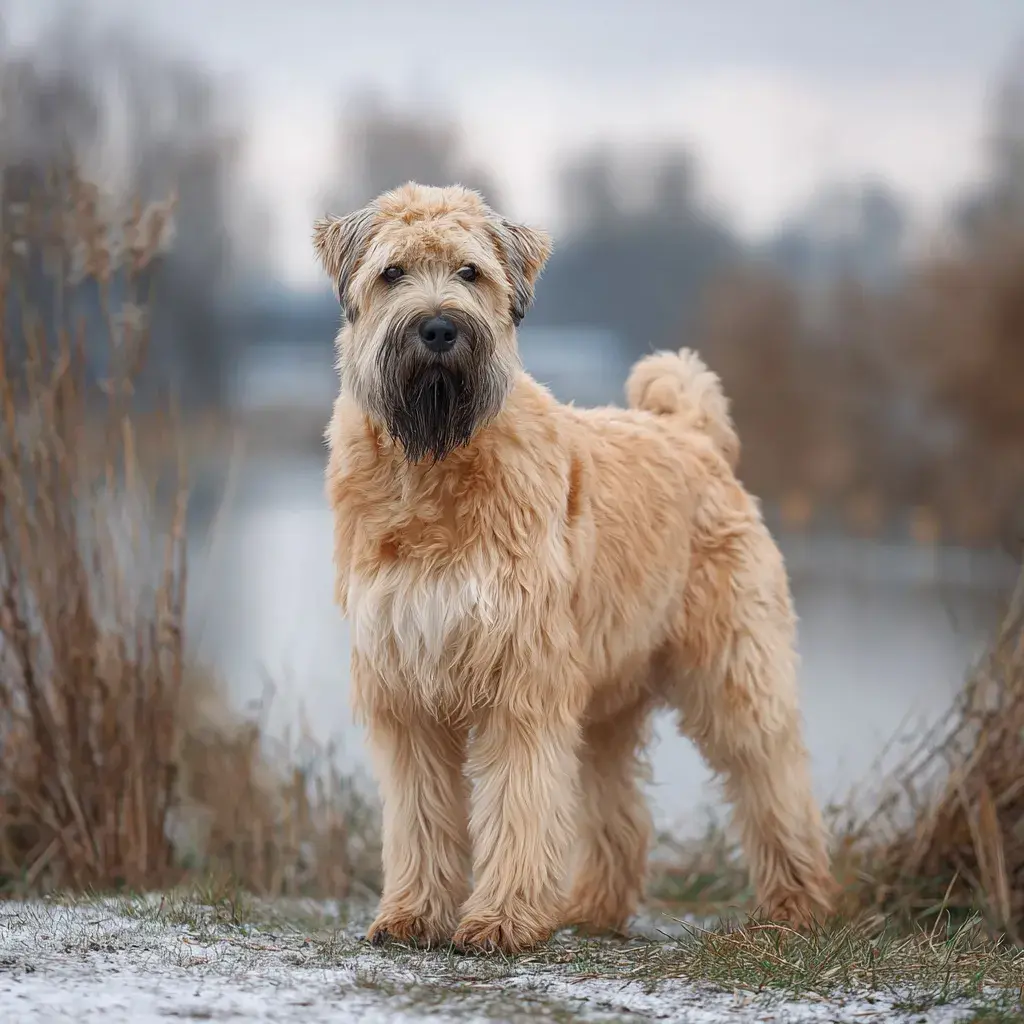 Irish soft coated wheaten teriér je jedno z nejstarších irských teriérských plemen, původně používaný jako univerzální farmářský pes v Irsku po staletí. Je to středně velký pes (samci až 48 cm, 16-20 kg) s charakteristickou měkkou, hedvábnou, vlnitou srstí v odstínu zralé pšenice (zlatá, béžová), bez podsady, která pokrývá celé tělo včetně tváře (vousy), a dlouhýma nohama. Wheaten teriér má výrazně přátelštější a měkčí temperament než většina teriérů - je to jeden z nejméně "teriérských" teriérů. Je velmi přátelský ke všem - lidé i psi. S rodinou je extrémně láskyplný a oddaný. S cizími lidmi je přátelský - není rezervovaný. S dětmi je vynikající - trpělivý, hravý a tolerantní, jeden z nejlepších teriérů pro rodiny.