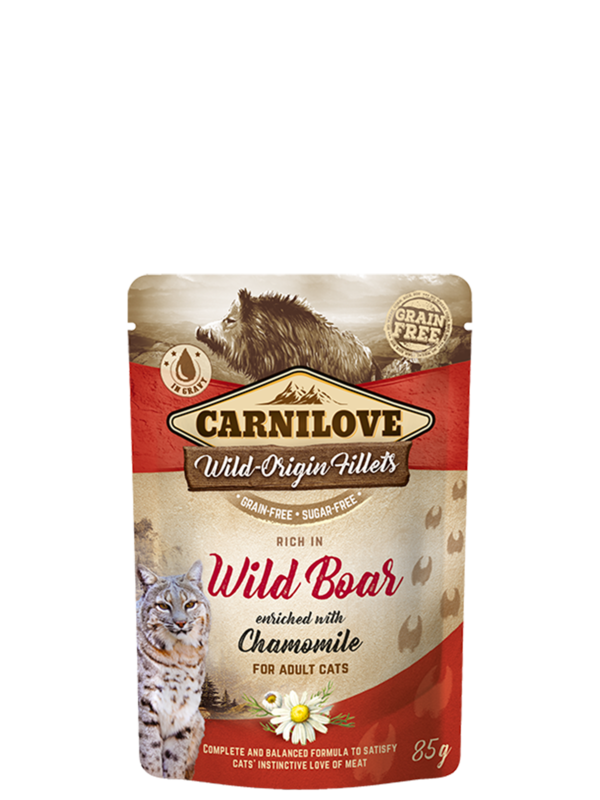CARNILOVE WILD-ORIGIN FILLETS – WILD BOAR ENRICHED WITH CHAMOMILE FOR ADULT CATS