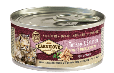 Konzerva Carnilove White Muscle Meat Turkey & Salmon for Kittens je kompletní vlhké krmivo pro koťata.