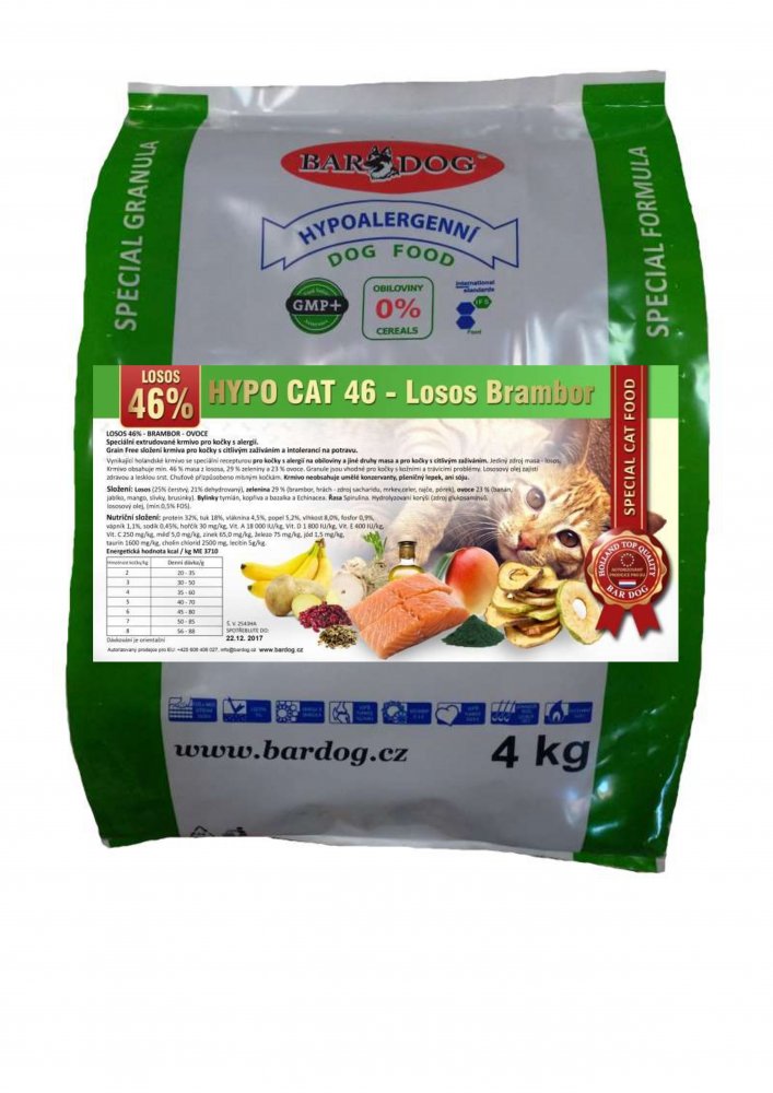Granule Bardog Hypoalergenní granule pro kočky Hypo Cat 46 – Losos Brambor 32/18 – 4 kg