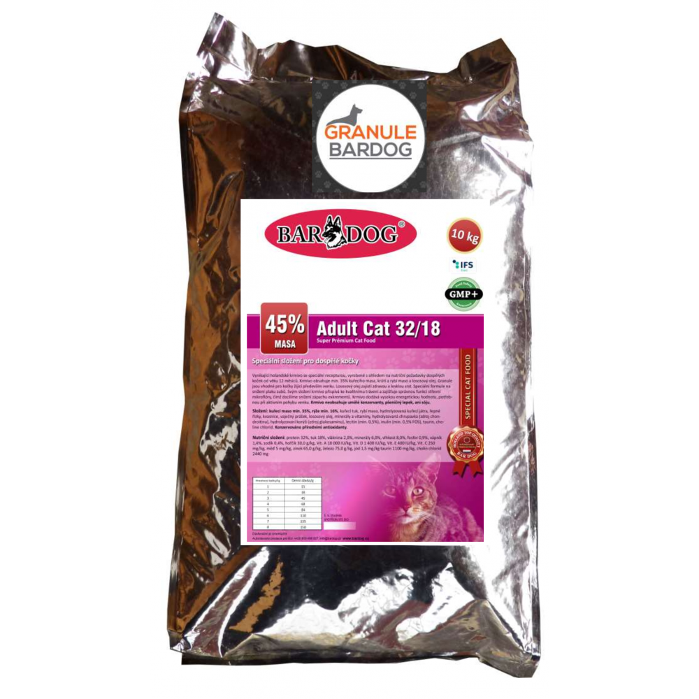 Granule Bardog Super prémiové krmivo pro kočky Cat Adult 32/18 - 10 kg