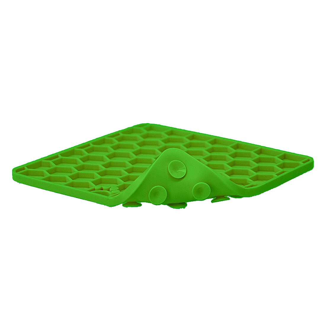 Lízací podložka Eat Slow Fun & Relax má mnoho silikonových přísavek, proto skvěle drží na hladkém povrchu, což oceníte při koupání, fénování, rozčesávání nebo jiném neoblíbeném ošetřování. Je skvělá jako zpomalovač jedení či pro zábavnou lízací hru, v létě jí můžete zamrazit i s dobrotami a dopřát tak pejskovi mlsné ochlazení. Podložka Eat Slow Fun & Relaxe je vyrobená ze 100% potravinářského silikonu a na spodní straně ma 49 efektivních přísavek, díky kterým bude na hladkém povchu držet jako přibitá!