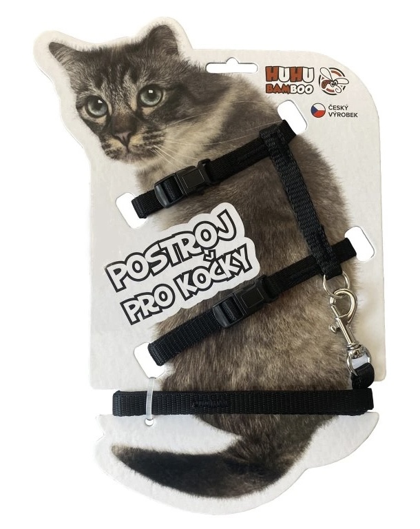Set vodítka a postroje je vyroben z měkkého popruhu. Spoje jsou šité, pro možnost štelování je postroj opatřen plastovou vsuvkou a přezkou. Pro připnutí vodítka jsou vybaveny dvěma déčky. Set je možné použít hlavně pro kočky, ale také pro malé psy či králíky.