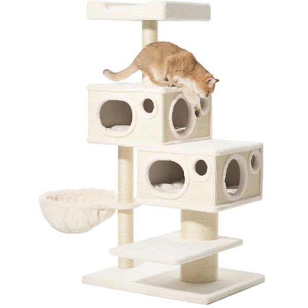 Měkký plyšový potah zajišťuje pohodlí, zatímco pevné sisalové kmeny o průměru 9 a 20 cm uspokojí přirozený instinkt ke škrábání.