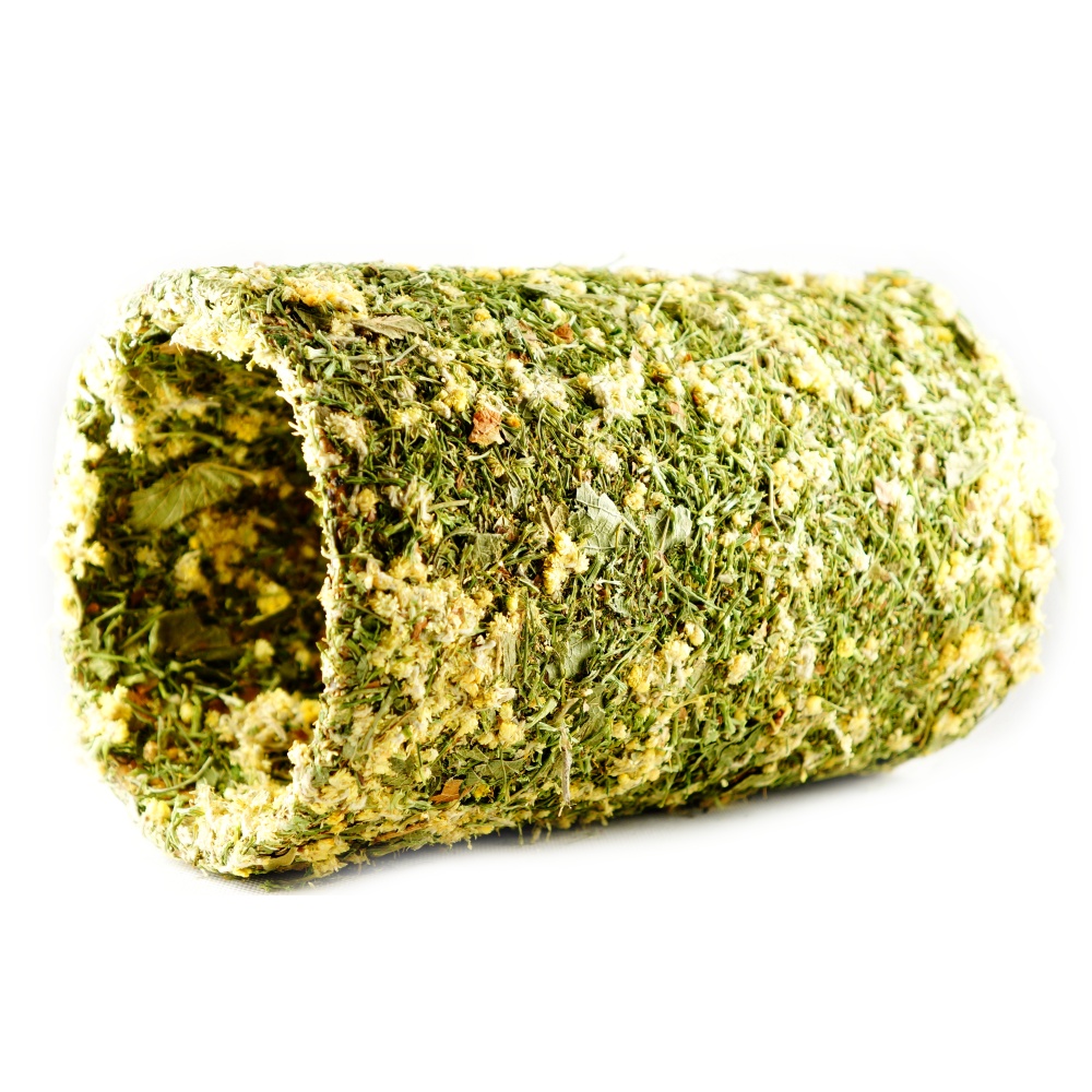 Bylinková přírodní pochoutka pro hlodavce ve tvaru tunelu na roli se slaměnkou a mátou.…
