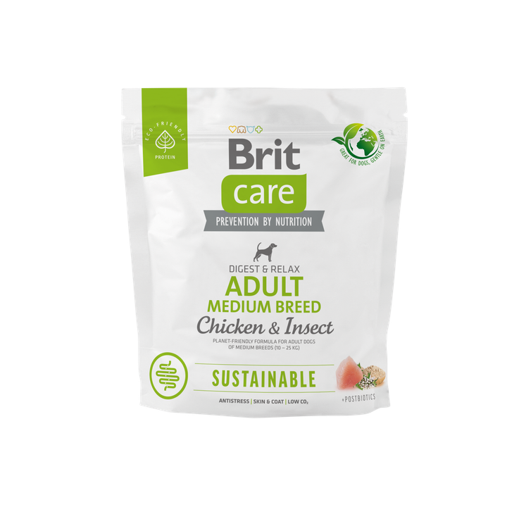 Brit Care Sustainable Adult Medium Breed – Superprémiové krmivo pro dospělé psy středních plemen (10 – 25 kg) s udržitelným složením z hmyzu a kuřete