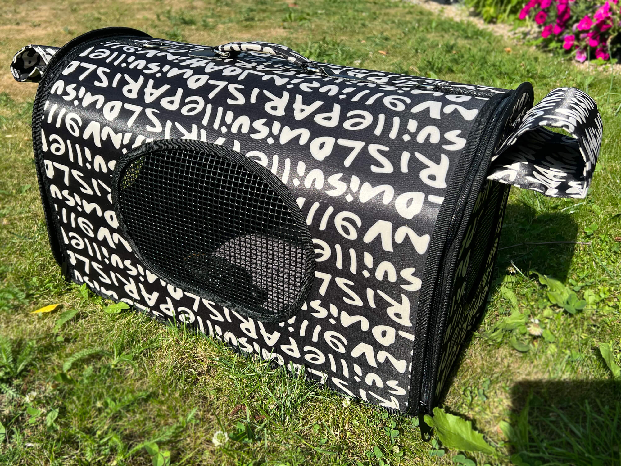 Resme taška s potiskem písmen je určena pro mazlíčky až do 4 kilogramů. Povrch tašky můžete snadno omýt navlhčeným hadříkem. Taška je opatřena háčkem pro připnutí psa, tím zvýšíte jeho bezpečnost během transportu. Ze stran naleznete síťky, kterými proudí pejskovi čerstvý vzduch. Na hřbetní straně se nachází praktický úchop pro snadný přenos. Majitelé ocení vyztužený úchyt. Pevné dno zajistí psíkovi dostatečný komfort. Díky svému pevnému materiálu psí taška drží svůj tvar. V případě potřeby ji můžete vystlat příjemnou dekou pro psa a tím pejskovi dopřát ještě větší pohodlí.