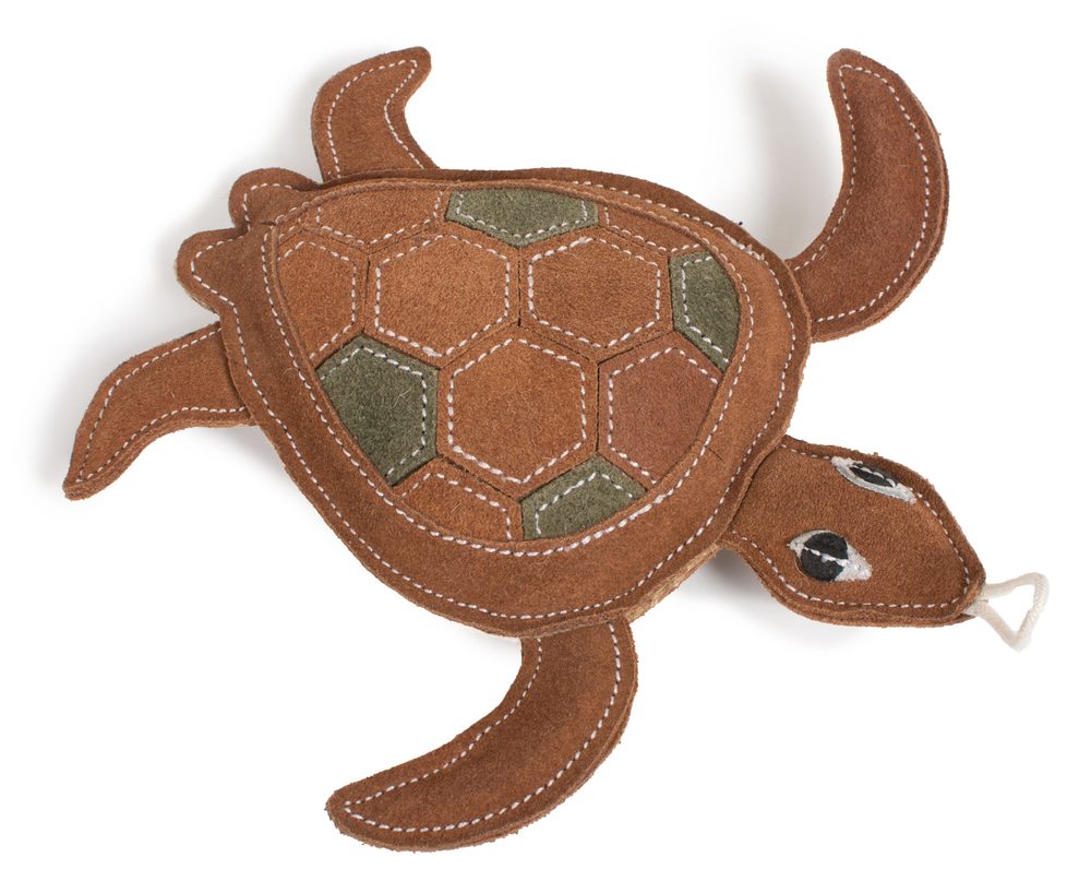 Tato želva je vyrobená z přírodní semišové kůže a plněná kokosovým vláknem. Je pevná, odolná a bezpečná pro všechny psy.