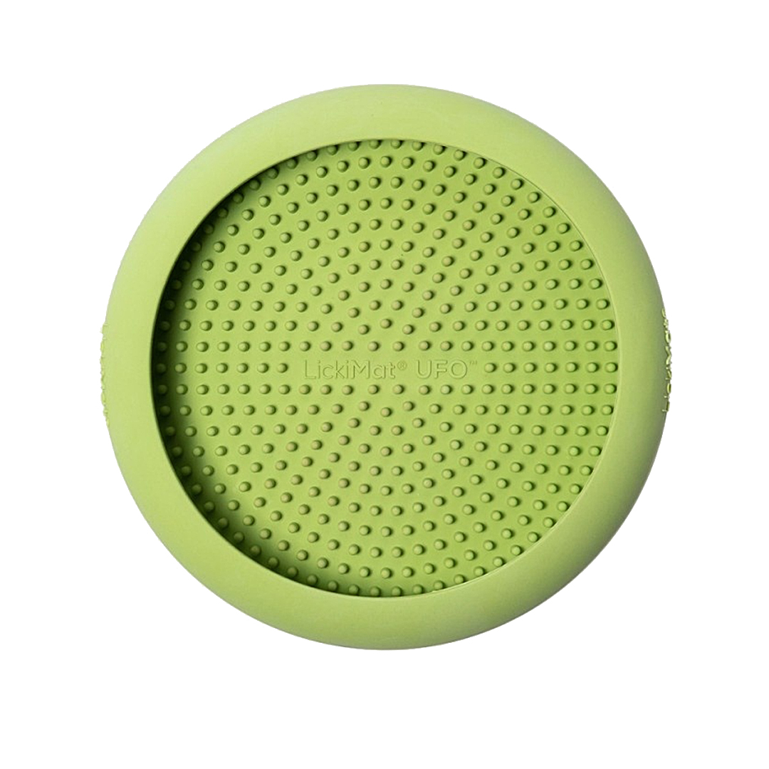 Velkým benefitem lízací misky UFO je, že díky zaobleným okrajům zachytne veškeré kousky, které by padaly při vertikálním uchycení nebo odlétávaly od jazyka vašeho mlsouna při použití na zemi.