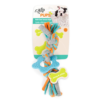 Provazová hračka z kombinace měkké pleteniny a bavlny je ideální pro štěněcí žvýkání. Velikost 19 cm.