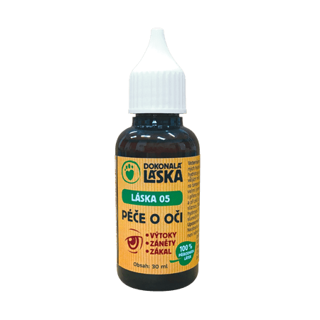 Směs rostlinných hydrolátů pro péči o oční okolí. Velmi jemným způsobem čistí, hydratuje a napomáhá regeneraci kožních buněk a zhojení citlivých míst. Má jemný protizánětlivý účinek, podporuje zdraví očí, dekontaminuje. Pokud chce zvíře přípravek olizovat, tak mu v tom nebraňte. Zvířata pudově vědí, proč to dělají a může to být významná podpora. V dávce nemusíte zvíře nijak omezovat. Čistě přírodní veterinární přípravek pro psy, kočky a jiná zvířata v zájmovém chovu. ospalky výtoky z očí usazování slzného výtoku nadměrné vysušování podráždění oka protizánětlivý účinek podpora oční buňky