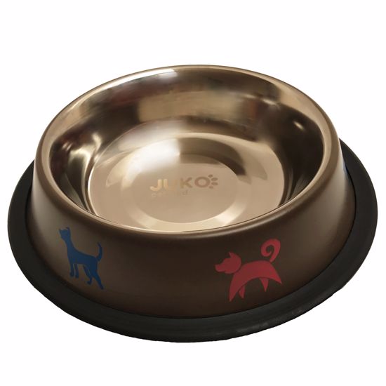 Miska nerez hnědá potisk psi 1,55 lHnědá nerezová miska s barevnými pejsky po obvodu. Miska je opatřena gumovým kroužkem, aby byla stabilní a neklouzala po podlaze a z našich misek patří mezi ty nejlepší.Objem: 1,55 lVýška: 7 cmHorní průměr: 21,5 cmDolní průměr: 29,5 cm