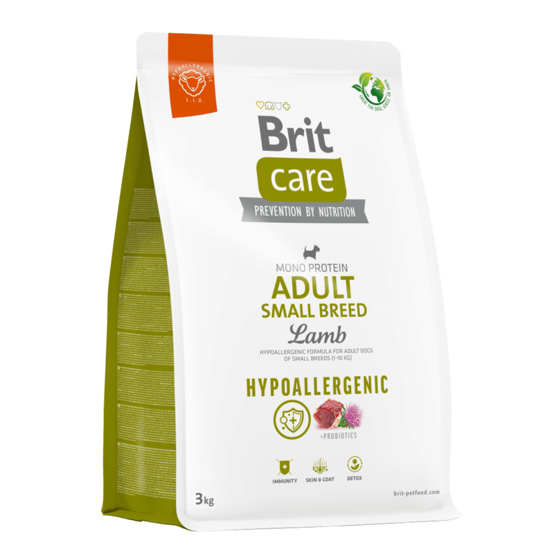 Brit Care Hypoallergenic Adult Small Breed je superprémiové krmivo s jehněčím masem a rýží pro prevenci potravinových alergií.