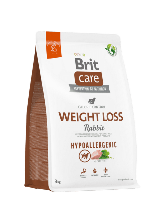 Brit Care Dog Hypoallergenic Weight Loss je dietní hypoalergenní krmivo s králíkem a rýží určené pro dospělé psy s nadváhou.