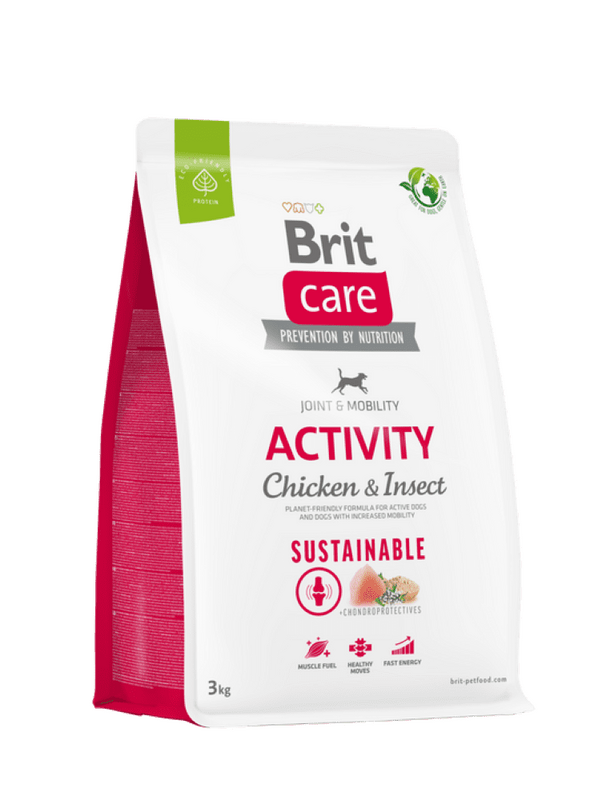 Brit Care Dog Sustainable Activity je superprémiové bezlepkové krmivo s kuřetem a hmyzem, vyvinuté speciálně pro aktivní psy s vysokými nároky na výživu, kondici a zdravý pohyb.