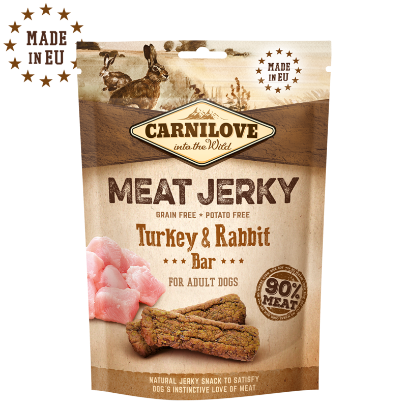 CARNILOVE MEAT JERKY – RABBIT & TURKEY BAR FOR ADULT DOGS