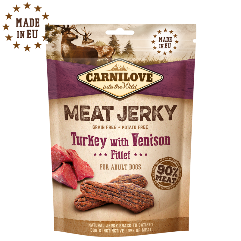 CARNILOVE MEAT JERKY – VENISON & TURKEY FILLET FOR ADULT DOGS