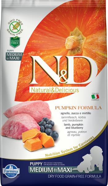 N&D PUMPKIN Dog GF Lamb & Blueberry Puppy Medium & Maxi 2,5 kg