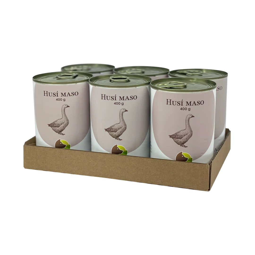 Poctivá konzerva s výjimečně vysokým obsahem husího masa.