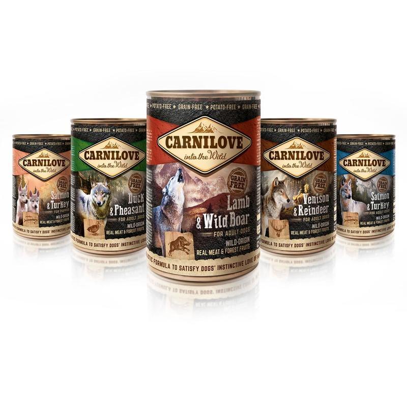 Carnilove Wild Meat Duck & Pheasant 400 g – bez obilné masové paté kachna a bažant s lesním ovocem pro dospělé psy. Složení: kachna a bažant 67%, borůvky 2%, brusinky 2%, maliny 2%