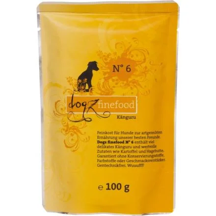 Detail výrobku: Kapsička Dogz finefood No.6 – s klokaním masem 100 g _Lahodné krmivo pro psy, které obsahuje spoustu klokaního masa, brambory, zdraví prospěšný pupalkový olej a šípky. Můžete objednávat po 1 kuse. Obchodní balení 12 ks.