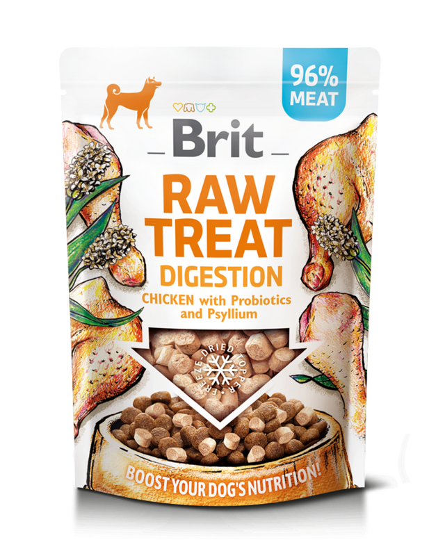 BRIT RAW TREAT DIGESTION Chicken – mrazem sušené funkční pamlsky s kuřecím masem a probiotiky pro podporu trávení psů všech plemen