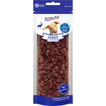 Mini kousky jeleního masa s L-karnitinem, vhodné nejen na trénink nebo pro časté odměňování psa kdykoliv během dne. Vhodné i pro ty nejmenší pejsky nebo jako pamlsek pro schovávání do psích hraček.