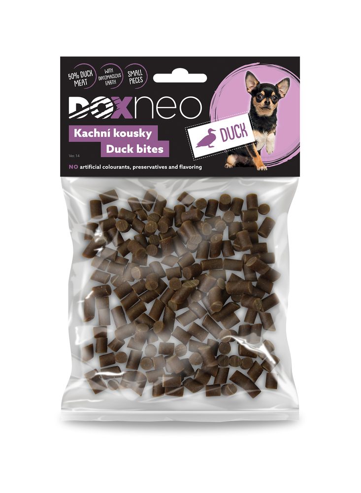 Měkké kachní kousky s křemelinou pro štěňata a dospělé psy Výběr správného pamlsku je velmi důležitý! Ke kvalitní stravě patří i kvalitní pamlsek a kachní kousky jsou skvělým a zdravým pomocníkem při odměňování vašeho mazlíčka. Produkty značky Doxneo jsou zcela bez obilovin. Najdete zde pouze špičkové složení v holistickém pojetí s přidáním zdraví prospěšné křemeliny. Výhodou kachních kousků je jejich měkkost a malá velikost ideální pro podávání za odměnu.