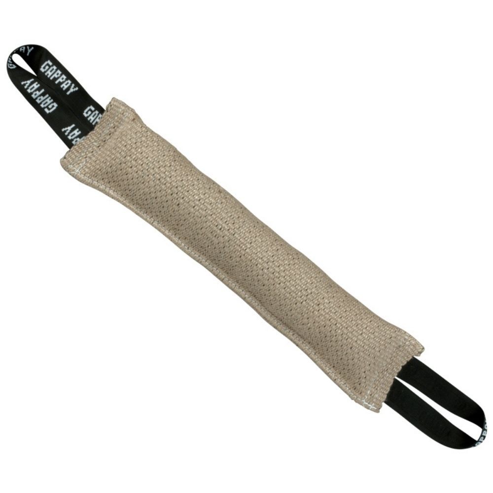 Hračka a zároveň výcviková pomůcka dvě poutka z jutového materiálu.