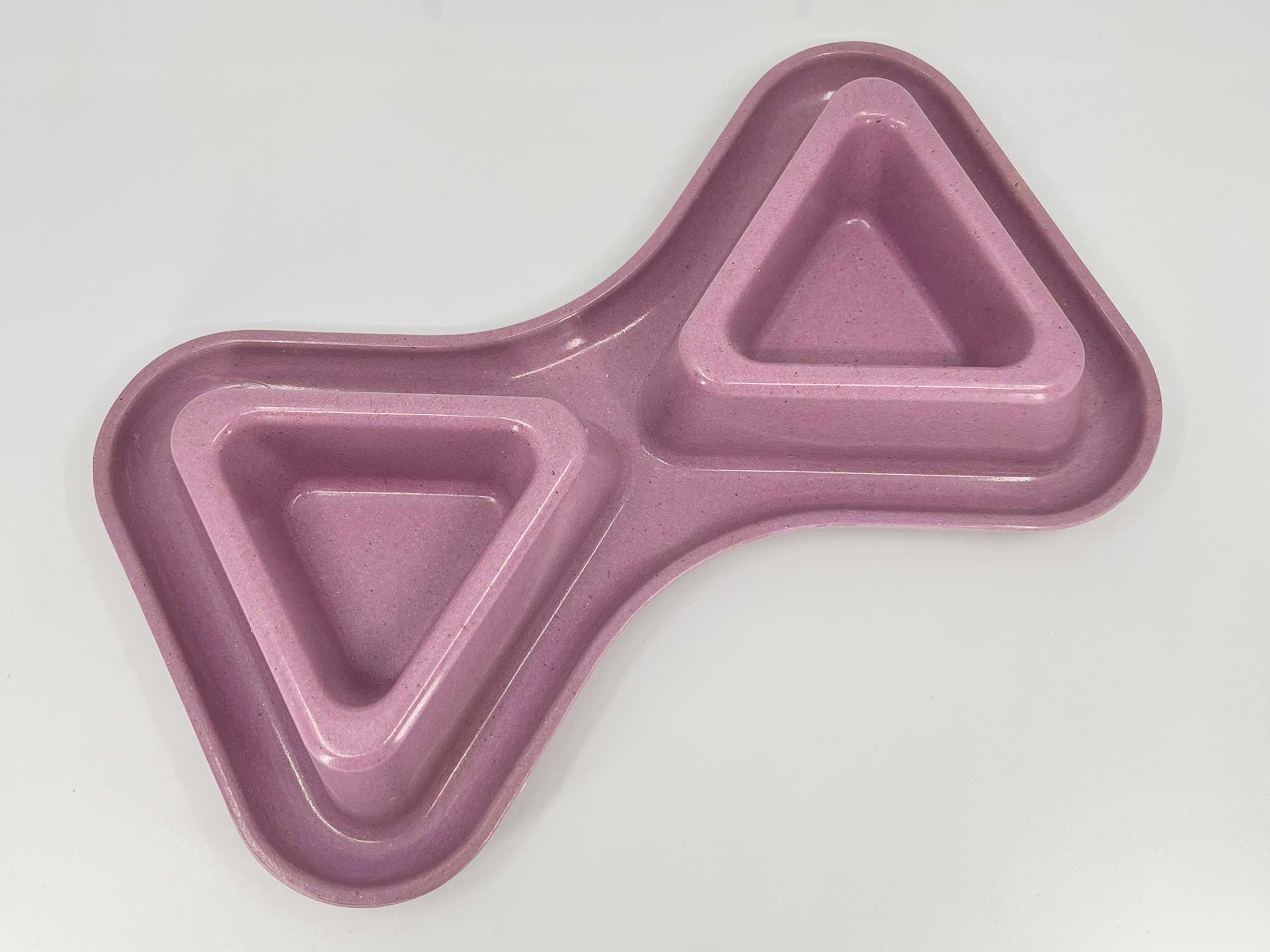Bambusová miska vyrobená z kvalitního materiálu, který je k přírodě šetrnější než plast. Svým tvarem připomíná kostičku. Kolem dvou vnitřních misek ve tvaru trojúhelníku se nachází ohraničení, které zabraňuje případnému zanesení krmiva kolem nebo přílišnému pocákání vody na podlahu. Díky gumovým protiskluzovým nožkám se nemusíte bát o nestabilitu misky. Výška misky je 6 cm s celkovým průměrem 7 cm. Hodí se tedy pro malá plemena.