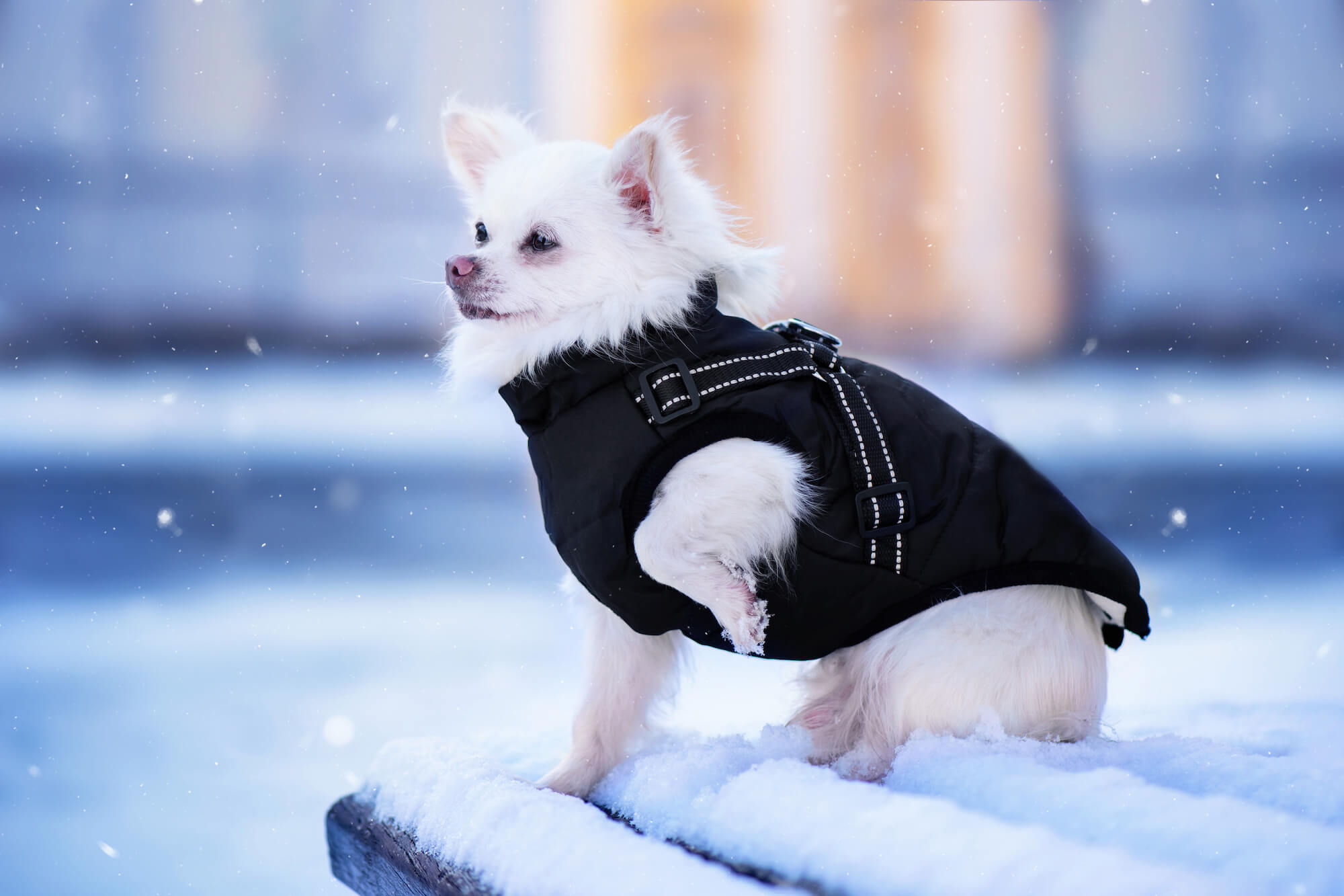 Náš tip: Po oblečení bundy upravte šířku postroje a dostatečně ho stáhněte. Tím dosáhnete lepšího přilnutí bundy k tělu psa a zvýšíte tak izolaci proti prochladnutí.