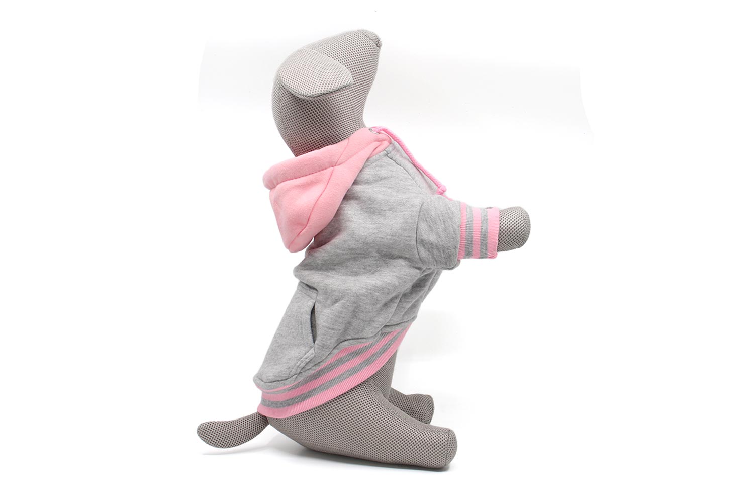 Mikina pro psa malého a středního vzrůstu s kapucí. Díky hřejivému polyesteru je ideální do chladných jarních a podzimních dnů. Vytvoří izolační vrstvu, jenž chrání mazlíčky před prochladnutím i ušpiněním. Praktický střih zakrývá hřbet, bříško a přední tlapky. Mikinku oblečete provlečením přes přední končetiny a zapnutím pomocí patentek. Mikina pro psy je zakončená úpletem. Sportovní vzhled oblečku doplňuje stahovací kapuce na šňůrky, stylové proužky a funkční neuzavíratelná kapsička. V případě ušpinění je možné mikinu vyprat v pračce.