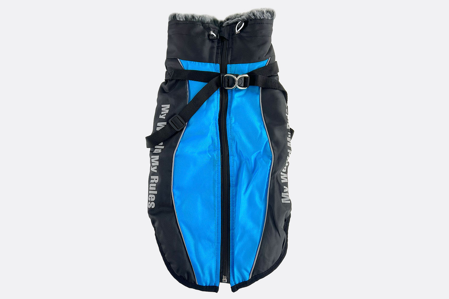 Vsepropejska Mansi zimní bunda pro psa s postrojem Barva: Modrá, Délka zad (cm): 49 – 52, Obvod hrudníku: 52 – 65 cm