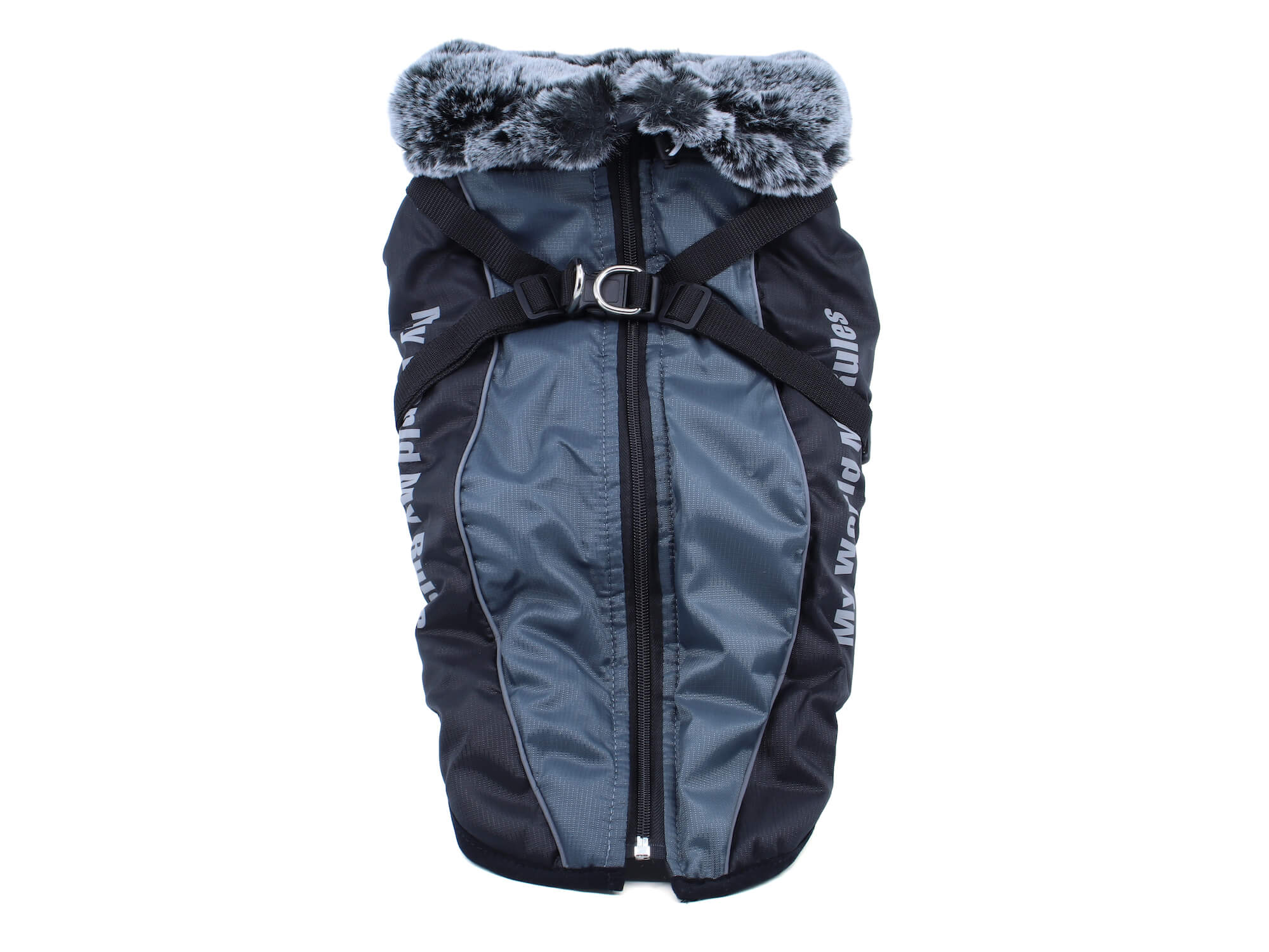 Vsepropejska Mansi zimní bunda pro psa s postrojem Barva: Šedá, Délka zad (cm): 69 – 72, Obvod hrudníku: 72 – 82 cm