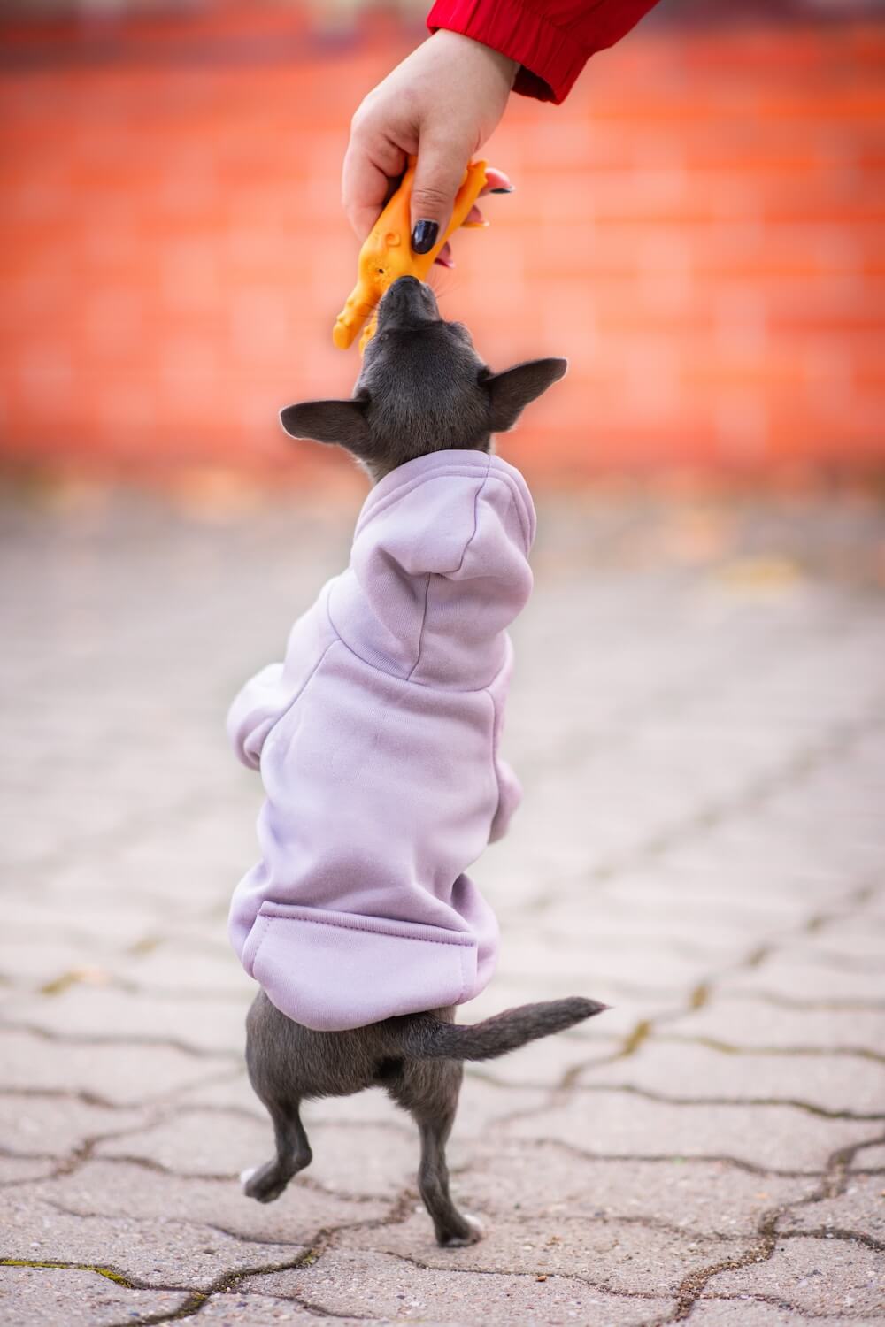 Mikina pro psy vhodná do suchého jarního, podzimního a zimního počasí. Disponuje našitou kapucí a stylovou kapsou na hřbetní straně. Praktický střih zakryje přední tlapky, hřbet a bříško. Mikina psa ochrání nejen před zimou, ale i ušpiněním. Výhodou oblečku pro psa je jeho snadná údržba. Pokud jej pes během dovádění venku ušpiní, lze obleček vyprat v pračce. Nabízena v mnoha barevných provedeních. Velikostně vhodná pro malá a střední plemena.