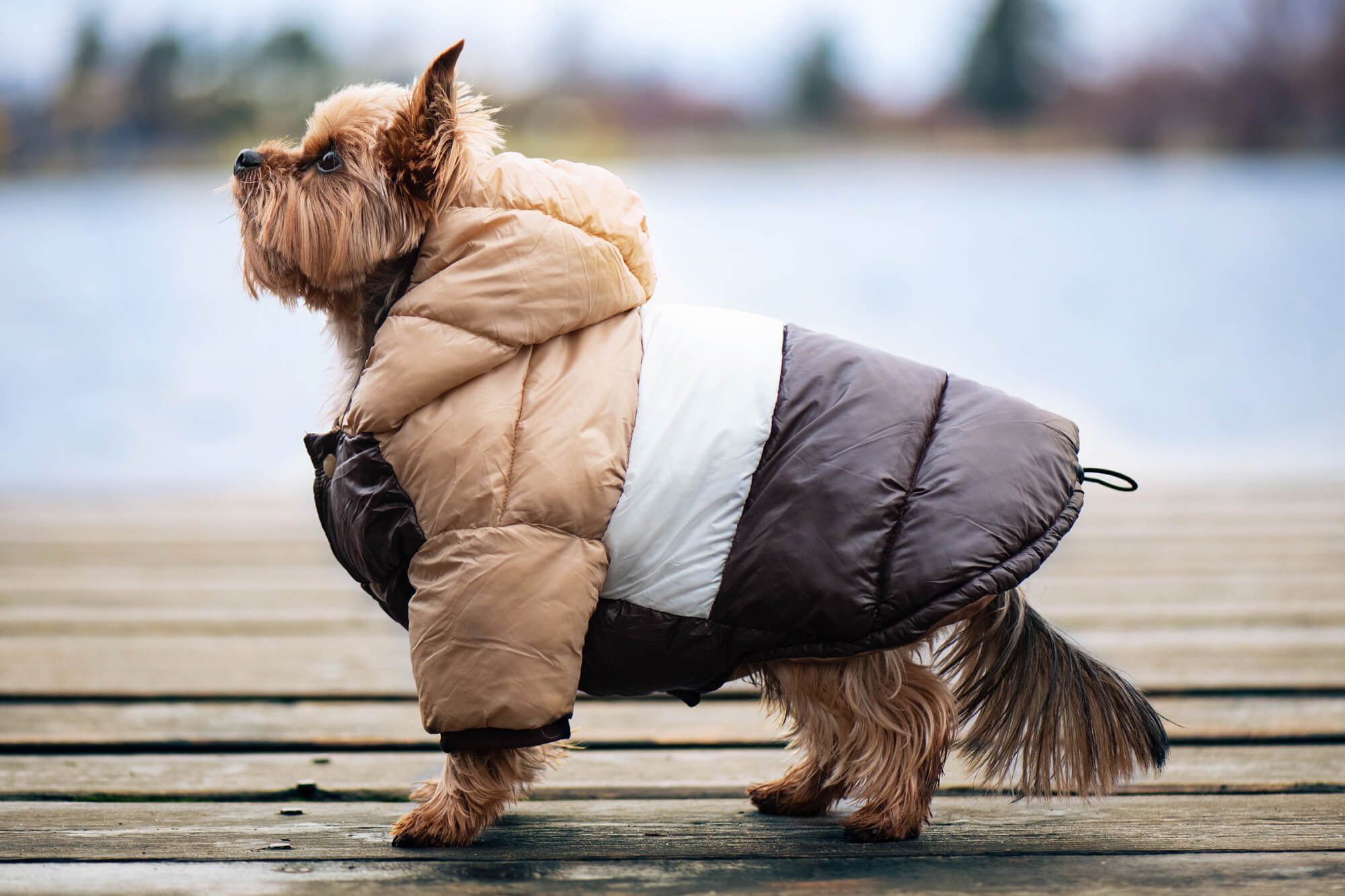Polyesterová bunda pro psa přijde vhod s přicházející zimou, kdy je potřeba naše čtyřnohé kamarády udržet v teple. Vlastníte-li malé či středně velké plemeno, tato bunda je skvělou volbou. Skvělý střih zakryje hřbet, bříško i přední tlapky, a navíc psíka neomezuje při pohybu. Bundička má i kapuci, kterou lze nasadit dle potřeby. Obleček je určený do sněhu i deště, proto se musí počítat s tím, že ji mazlíček občas ušpiní. To ovšem není žádný problém, bundička totiž disponuje nenáročnou údržbou a lze ji vyprat v pračce na 30 °C. Výhodou je i stahovací gumička umístěná na zádech u ocásku, díky které lze přizpůsobit obleček tak, aby neodstával.