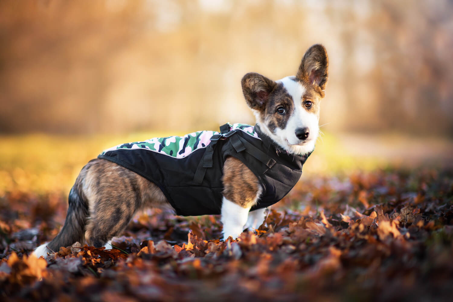 Maskáčový obleček pro psa malého a středního vzrůstu. Zaujme nepromokavým a hřejivým materiálem, který zabrání prochladnutí, promočení i ušpinění kožíšku.