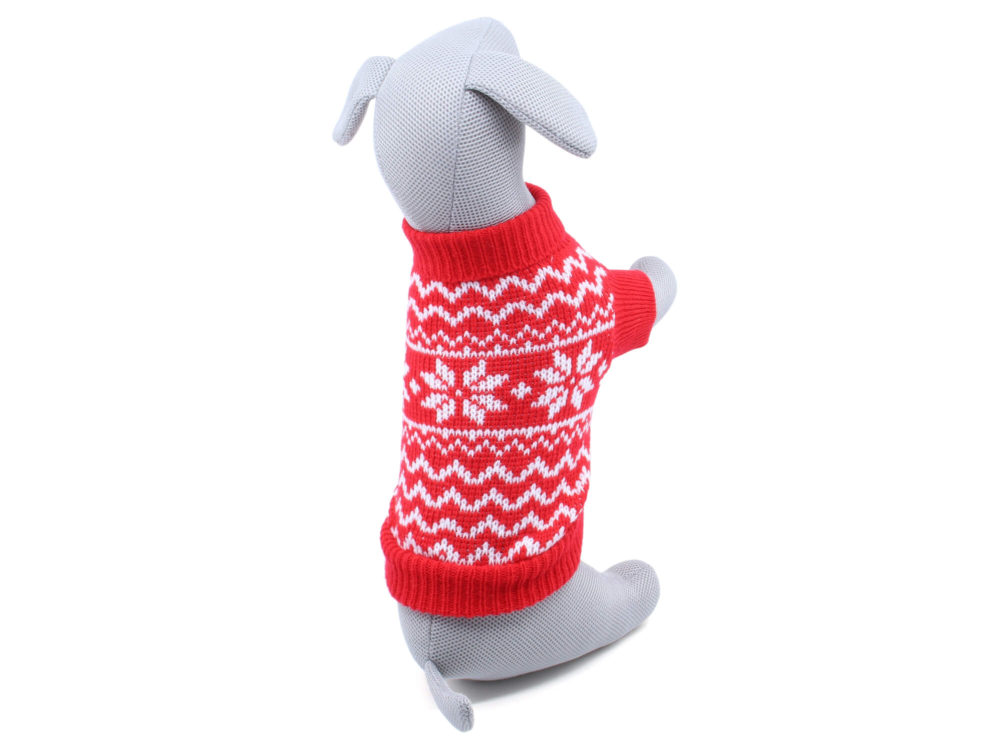 Elastický svetr pro psy malého a středního vzrůstu s Vánočním motivem. Díky pružnému polyesteru se snadno přizpůsobí psí postavě. Svým střihem zakrývá hřbet, bříško a přední tlapky. Tím dokáže mazlíčkův kožíšek udržet v teple a čistotě po celou dobu venčení. Svetřík zdobí úplet v oblasti límce, předních končetin a dolní části oblečku. Majitele potěší snadné oblékání svetříku – stačí pouze provléct psíkovi přes hlavu a přední tlapky. V případě ušpinění lze svetřík jednoduše vyprat v pračce.