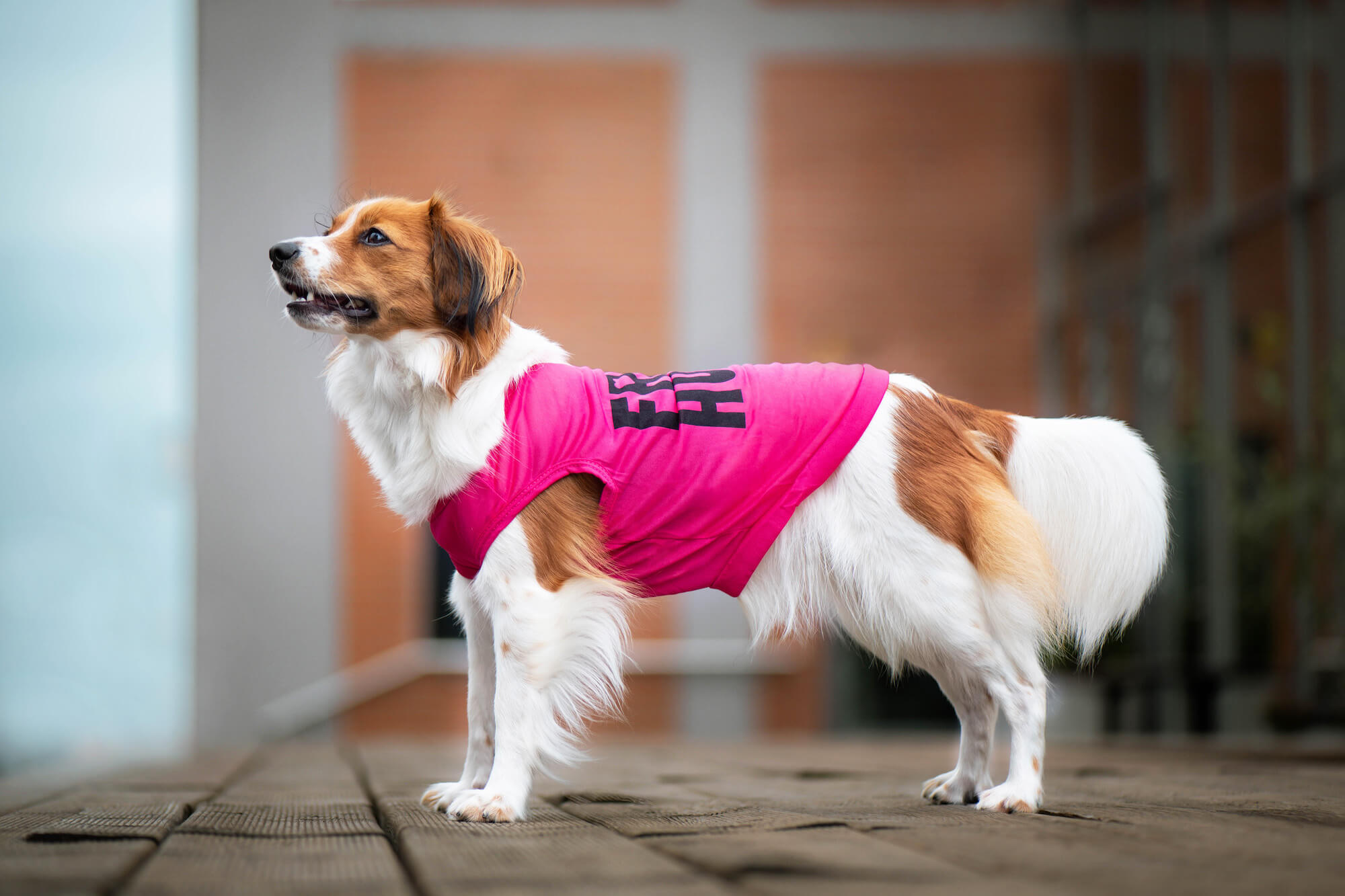 Obleček pro psa je vyrobený z polyesteru.
