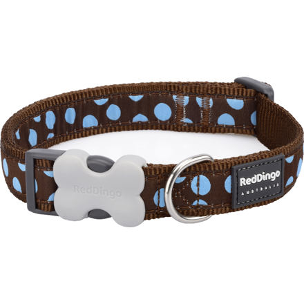 Obojek Red Dingo pro psy s obvodem krku 20 – 32 cm. Šířka popruhu 12 mm. Vzor Blue Spots on Brown.