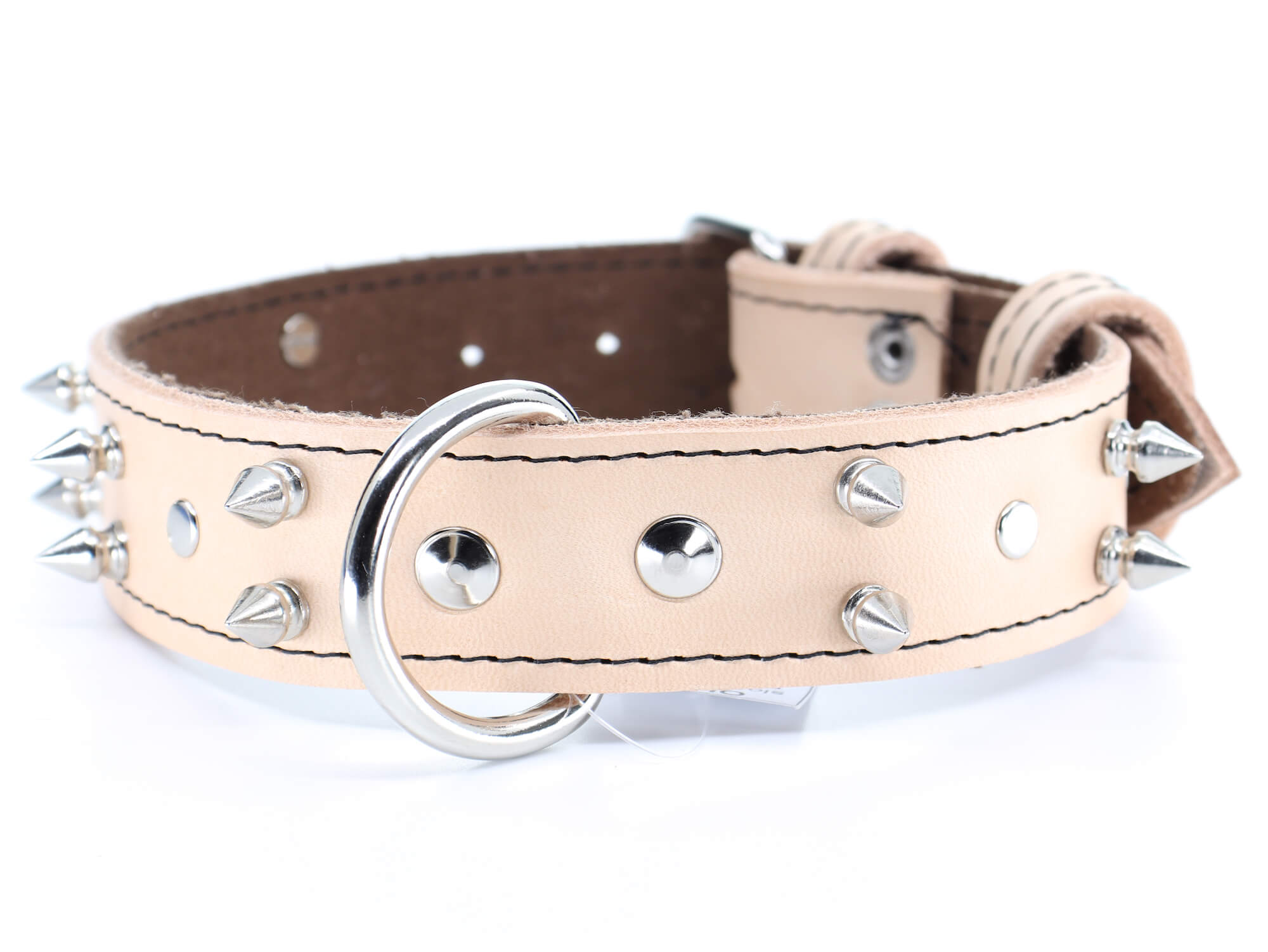 Apex kožený obojek pro psa s hroty | 22 – 65 cm Barva: Béžová, Obvod krku: 56 – 65 cm, Šířka: 3 cm