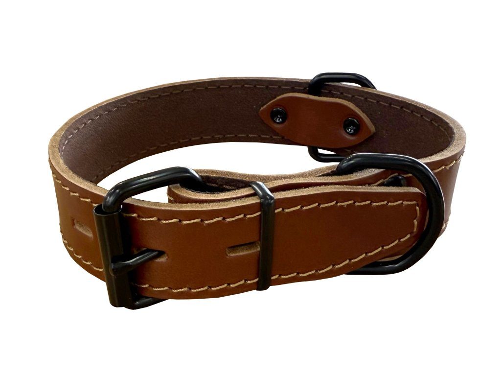 Elegantní a odolný obojek z hovězí kůže s černým kováním