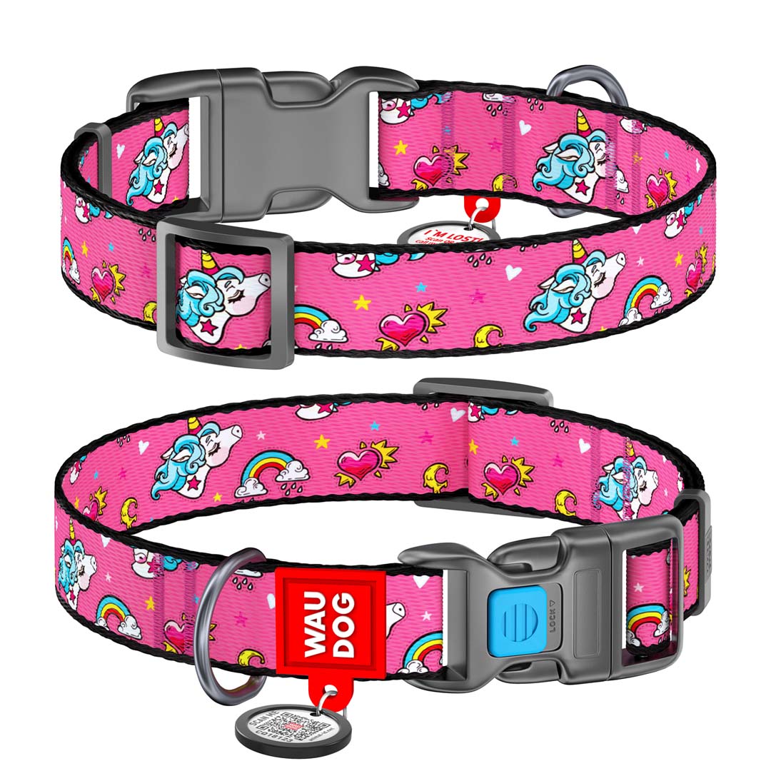Je tvůj pejsek úžasný jako Jednorožec? S tímto obojkem nebude pochyb, jak moc svého pejska miluješ! Waudog je plným těchto bájných zvířat a srdíček, obrázků duhy a hvězdiček na růžové barvičce. Nejroztomilejší vzor ever! A můžeš ho mít i na vodítku! K obojku chytrá QR známka zdarma!