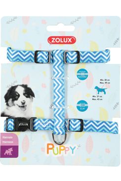 Nastavitelný textilní postroj pro štěňata v jemných pastelových barvách se vzorem.