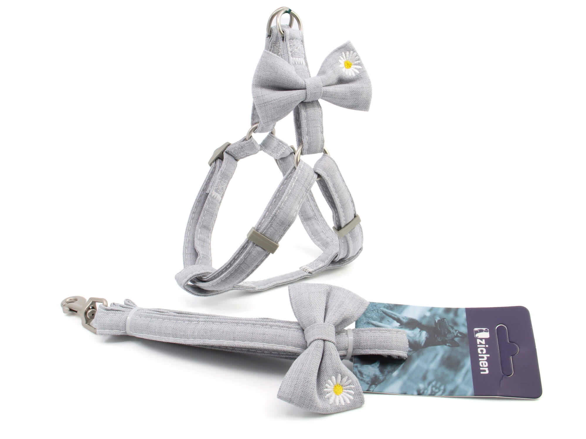 Hledáte roztomilý postroj, který dodá Vašemu mazlíčkovi eleganci? Set na venčení je ideální pro střední a velká plemena s obvodem hrudníku v rozmezí 32 – 54 cm. Vyrazit v něm můžete do města i do přírody.