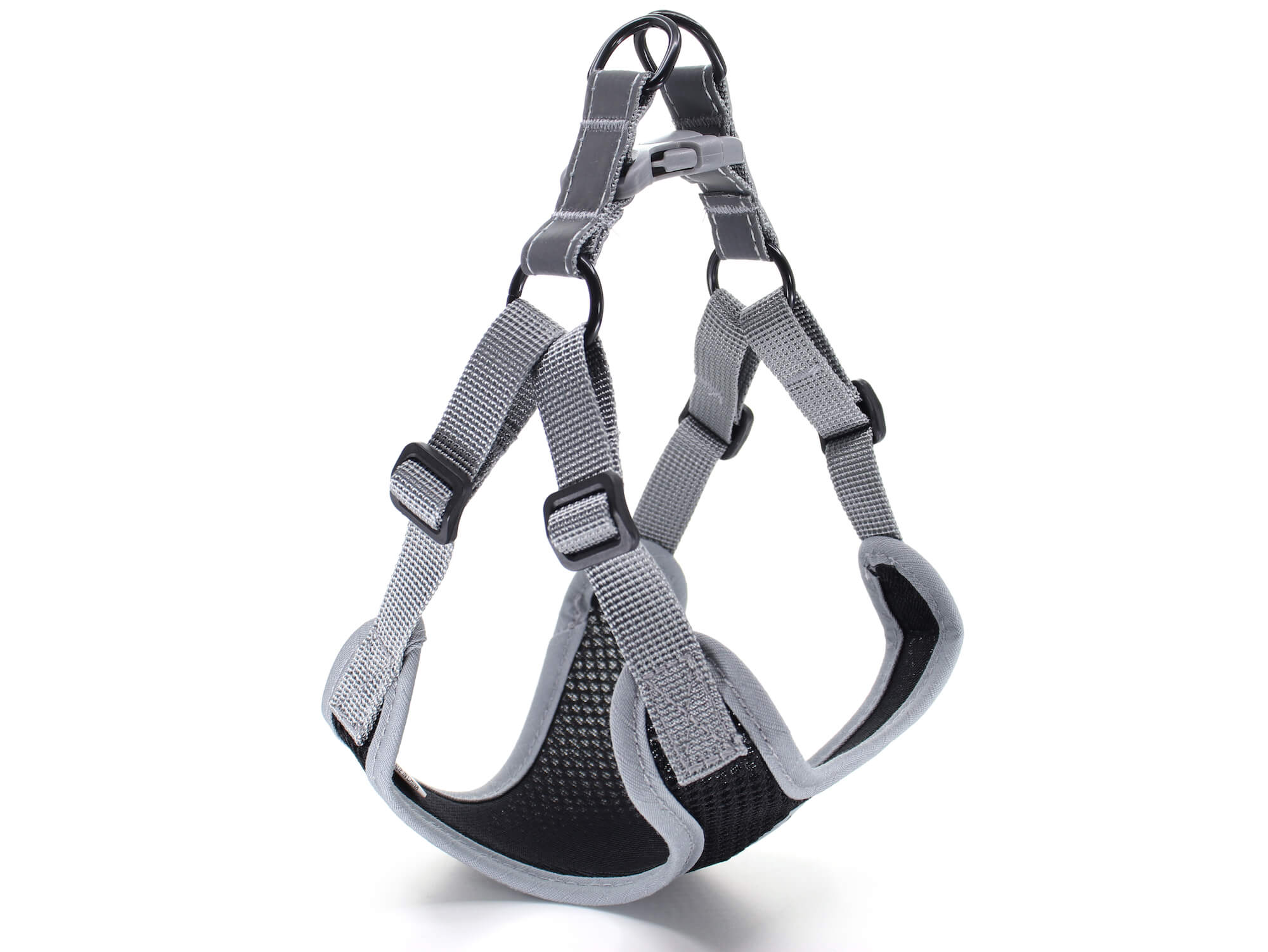 Psí kšíry lze vybírat z více velikostí dle obvodu hrudníku. Ideální pro střední a velká sportovně založená plemena. Kovové očko na hřbetní části slouží k připnutí vodítka. Velká výhoda kšírů je ta, že rozloží tažnou sílu po celé délce páteře. Tím omezí zatěžování páteře a minimalizují zdravotní problémy chlupáčů. Kvalitní materiál disponuje svou pevností a odolností. Jednoduché zapínání na přezku se nachází na břišní straně. Stylové šedo-černé provedení.